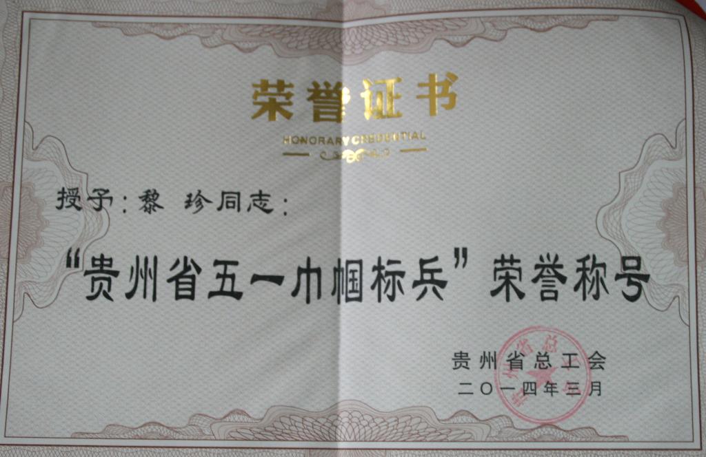 黎珍老师荣获“贵州省五一巾帼标兵”