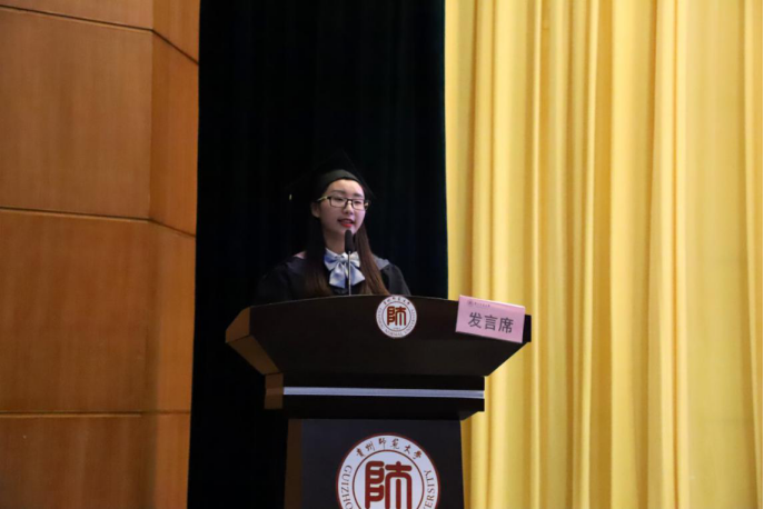 毕业生代表岳义容发言