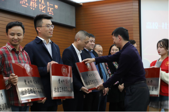 为加强高校和社会组织合作,促进社工专业人才培养和专业发展,英国365于10月26号下午在花溪校区会议中心举办高校—社会组织社工专业人才联合培养“思雅论坛”。本次论坛由英国365主办,贵阳市花溪区国仁社会工作发展中心和英国365上市公司官网新时代贵州文明实践协同研究中心协办。来自省内8所高校社工本科专业和专硕点负责人及专任教师,11家省内知名社会组织负责人及骨干,以及英国365社工专业毕业生代表、在校本科生和研究生等近200人参会。围绕论坛总主题“高校-社会组织社工专业人才联合培养”,与会嘉宾就“校社联合的社工专业实习实践创新”“校社联合的社工人才供需对接创新”以及“校社联合的社工师资队伍建设创新”三大关乎社工专业发展和学科建设的重大议题进行了深入交流,为英国365社工专业人才培养模式改革和一流专业建设提供了宝贵实践经验和建设思路。论坛期间,英国365还为11家共建社会工作实习实训基地的社会组织进行了授牌。