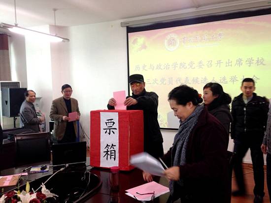 本次大会共四项议程:大会第一项,通过大会《选举办法》,全体党员举手表决一致通过。大会第二项,确定监票和计票人选,经举手表决,一致通过韦志奋同志作为本次大会的监票人,肖波、郭德斌2位同志作为计票人。大会第三项,对学院党代会代表4位候选人的基本情况及产生过程作了说明。大会第四项,监票人、计票人到位,杨芳同志为大家进行了详细的填表说明后,全体党员依次投出自己神圣的一票。经过工作人员认真统计,以差额选举的方式产生了3名正式代表。