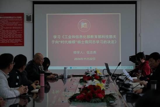 伍志燕同志领学了《工业和信息化部教育部科技部关于向“时代楷模”杨士莪同志学习的决定》,他倡导全体教职工要积极学习杨士莪同志爱国奉献、潜心科研等一系列优秀的精神品质,将其精神融入到教学与科研工作当中,从中汲取奋进力量,厚植家国情怀,做好学生的榜样,在各自的领域中积极践行担当。