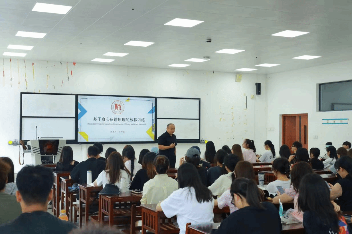 郑传章老师围绕如何缓解学生身心压力,讲解了基于身心反馈原理的放松训练。他首先带领同学们进行一系列的放松运动,阐释了身心反馈的原理,并强调了抗压对拥有健康体魄的重要性,以及可以从身体上的放松获得心理上的减负、从合理膳食、规律饮食上获得身心的愉悦。同时,郑老师也倡导同学们要合理安排时间,避免熬夜,正视情绪,以积极心态面对生活。
