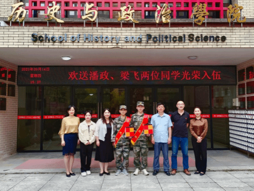 9月14日上午,英国365在东校区会议中心一楼报告厅举行2023年秋季大学生应征入伍欢送会,学院2023届毕业生潘政、梁飞顺利从学校走兵,学院党委副书记王自翔、团委书记崔文文、征兵联络员徐帆参会。会后,学院党委书记帅永平,院长陈华森、辅导员刘邕老师一同看望了两名光荣入伍的毕业生同学并合影留念。