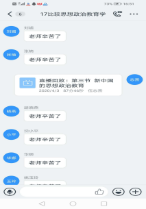 为完成分步骤建设好国家一流专业建设点的任务,强化思想政治教育专业人才培养质量,落实学校-学院-专业三维人才培养质量保障体系,因受疫情影响,思想政治教育系于4月3日10点半在“钉钉”平台上举行了本学期第一次教学公开课。主讲教师为伍志燕教授,讲授课程为《比较思想政治教育学》。