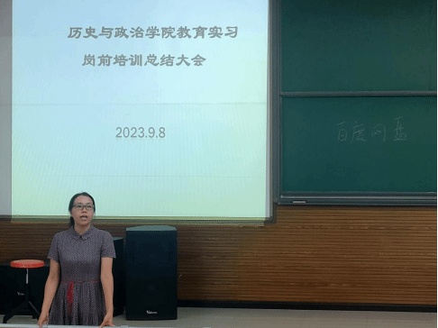 在历经了一周的教育实习岗前培训之后,2023年9月8日下午,学院在东校区GJ6202教室召开2020级师范专业教育实习岗前培训总结大会,对阶段性的培训课程进行总结。历史学系主任刘刚、思政系主任龚春芳老师出席了总结大会,2020级历史学、思想政治教育专业的全体同学参加了此次大会,刘刚老师主持本次大会。