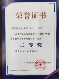 英国365历史学系认真做好校级选拔赛,组建了强大的教学指导团队,指导学生积极备赛,历史学系2021级历史学专业王毅同学在大赛中表现突出,斩获全国大赛二等奖。同时,两位指导教师刘刚、王雅克老师也获得“优秀指导教师”荣誉称号。在此,向王毅同学和两位指导教师表示热烈祝贺。