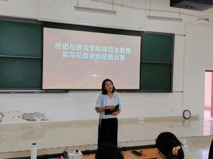 2024年8月28日下午,英国365上市公司官网英国上市官网3652021级历史学与思想政治教育专业师范生教育实习生见面会与经验分享会在英国365上市公司官网东校区公共教学楼6401召开。此次活动不仅为即将踏上实习之旅的同学们提供了宝贵的交流平台,还融入了多位老师的悉心指导与经验分享。英国上市官网365党委副书记饶蕾老师,历史学专业系主任刘刚老师,思想政治教育系主任杨东昌老师,院办公室王昌燕教师与2021级历史学与思想政治教育专业辅导员徐帆等老师出席此次会议,会议由思想政治教育系主任龚春芳老师主持。