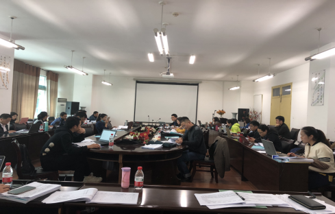 4月13日,思政专业认证自评报告撰写团队的32名老师再次聚集到宝山校区文科楼三楼会议室集体办公。早上九点,团队的老师们基本已全员到齐,一直工作到下午四点,学院廖光珍书记,陈华森院长和蒲文彬副院长全程陪同。