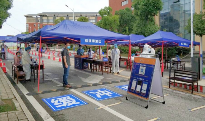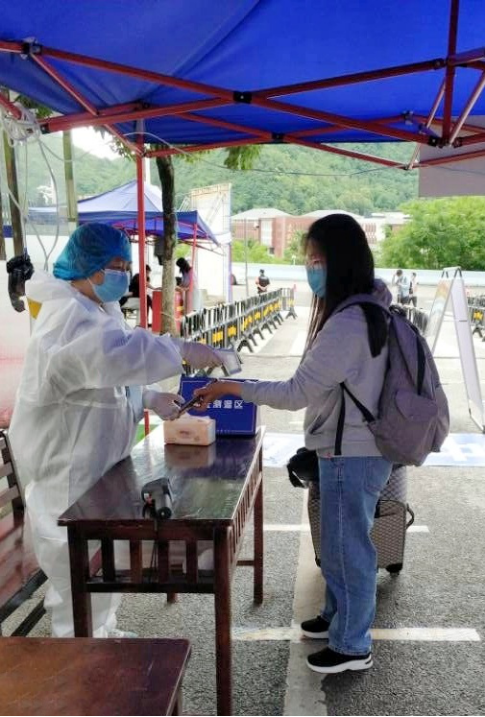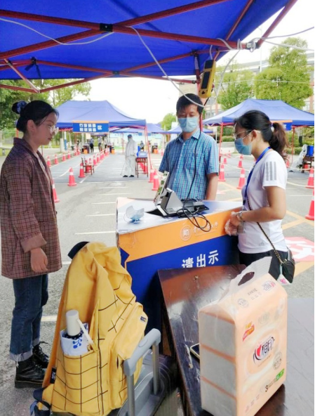 上午10时英国上市官网365的老师们在东门处的验证测温区就位,迎接同学们的到来。返校学生们通过防疫健康信息扫码、体温测量、证件查验、行李消毒、口罩更换等环节进入到久违的校园里。